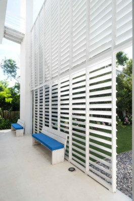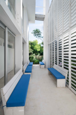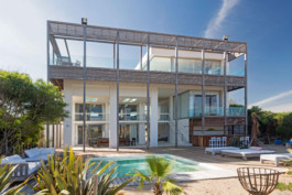 La casa tiene tres niveles para poder tomar la máxima altura y obtener las mejores vistas al mar y al pueblo. En el nivel superior se encuentra la zona pública de la casa a la cual se accede por una gran rampa de madera desde el jardín. Un gran living comedor y una parrilla se abren a una terraza con piscina, espacio que ampliamos sustancialmente, organizándolo con pérgolas de madera de lapacho que brindan gran calidez al ambiente. En planta baja, la vida diurna se divide en otra zona sobre la arena con una segunda piscina y un diseño distendido rodeado de plantas típicas de la costa esteña.