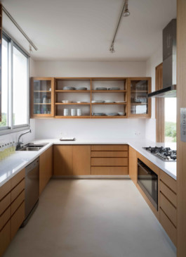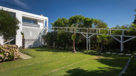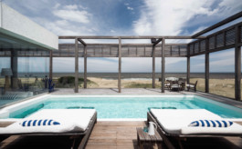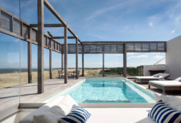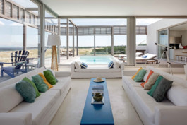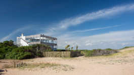 La arquitectura moderna, contemporánea vincula sencillamente la gran casona con el agreste paisaje de dunas y mar bravío de esta playa abierta al océano atlántico. Los colores de la arena, los blancos y la madera del lapacho en estado natural son una perfecta combinación para esta casa de playa atípica.