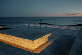 La planta baja con una amplia zona de estar y parrilla, un patio abierto al norte con la piscina, que como un espejo totalmente elevado del piso, es el centro de la casa. Los dormitorios de los chicos salen a este patio vinculándose directamente con la piscina y zona de juegos, mientras que la planta alta, con una vista privilegiada alberga la cocina, living comedor y suite principal, organizando todo en un espacio lineal y amplio que a través de una gran terraza, enmarca la fantástica vista de Punta Ballena .