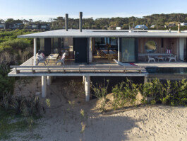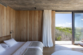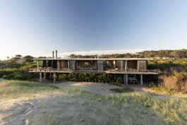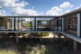 Llegando a José Ignacio, se despliega una franja de viviendas de reciente construcción, asentadas sobre terrenos irregulares modelados por la cercanía a las dunas y la vegetación agreste. En este contexto natural privilegiado, la premisa del proyecto fue clara desde el inicio: preservar al máximo el entorno, minimizar el movimiento de suelo y elevar la arquitectura para abrirse al mar.