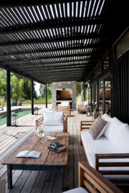 Se decidió pintar todo de color negro, ya que queríamos que la casa se derrita en el bosque y, al observarla, se entiende que respeta mucho más la naturaleza. La luz del día penetra en estas cabañas modernas a través de ventanas de piso a techo que permiten disfrutar de la inmensidad del campo. Una piscina de entrenamiento, parrilla, fogatas y árboles grandes dan el último toque al Campamento de Geoff, un espacio para vivir y disfrutar de la vida.