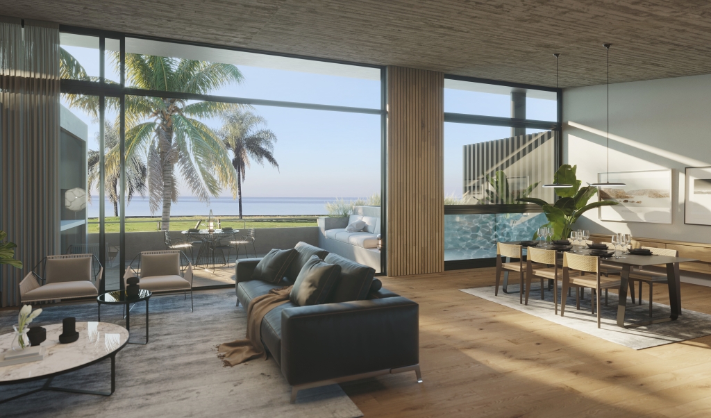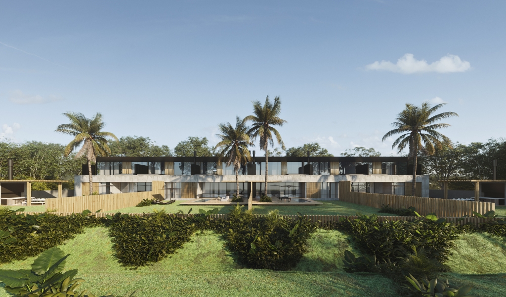 En planta baja se distribuyen 4 unidades funcionales de 3 dormitorios en suite y vestidores, con livings apaisados aprovechando al máximo las vistas y generando áreas de expansión semicubiertas de generosas dimensiones.