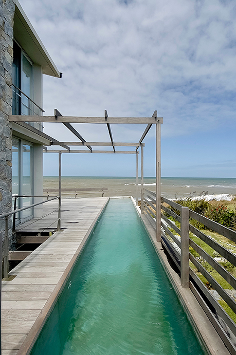 Al Mare seems like a part of the landscape on the coast of La Posta del Cangrejo. Its volumes project out perpendicular to the sea in response to a site that is bounded by side streets leading down to the beach. Therefore, its layout is not continuous—running parallel to the sea—but rather like a gradual approach as its spaces descend towards the water.