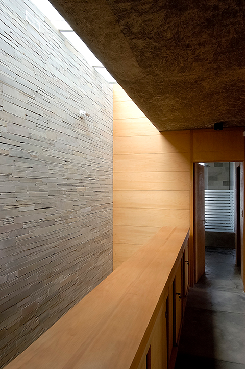 The inside is filled with extremely subtle features, such as the treads on the cantilevered staircase attached to the wall, where the light from above enters obliquely, and handcrafted details that reject the sophisticated enticements of the large city.