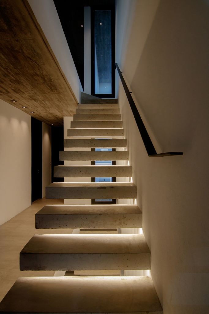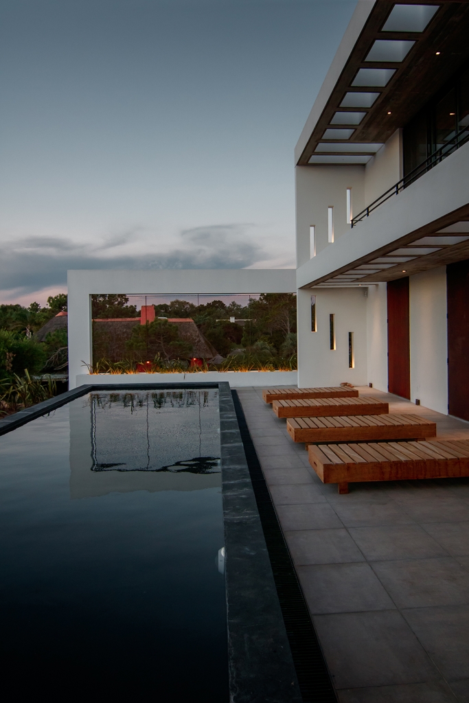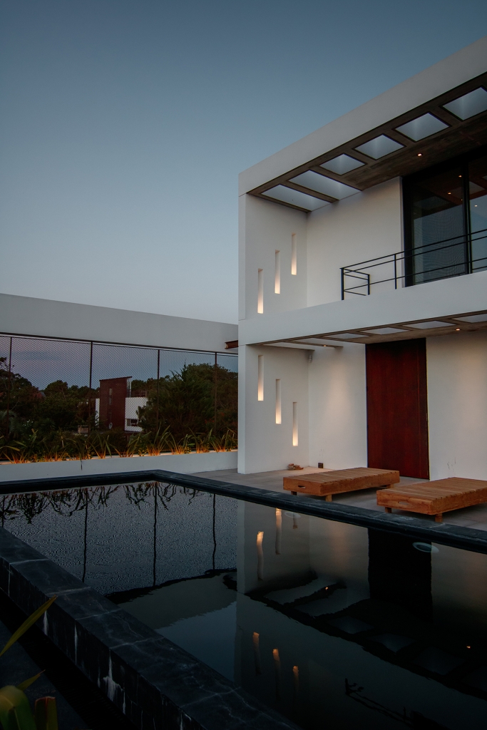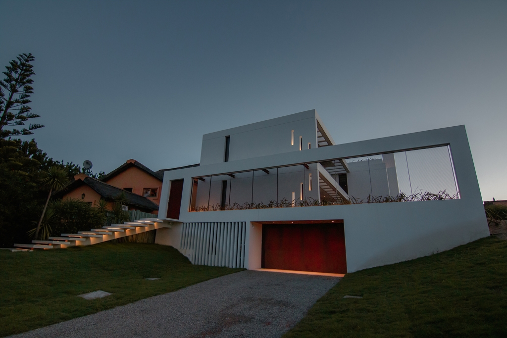 Located on the beachfront of Punta Ballena, the house rises on three levels to reach the maximum height possible and get the best views of the surrounding sea and forest.
