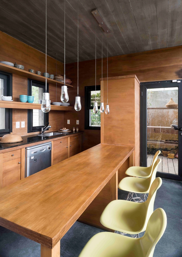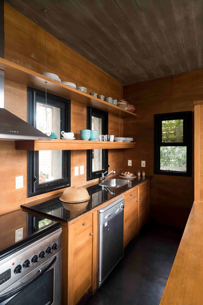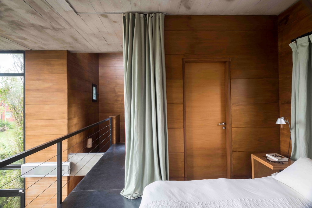 The project is made up of two independent volumes that articulate a patio with a pool, a grill and it’s breezy pergolas for the summer. The black and gray materials blend in with the landscape of the maritime forests completely.