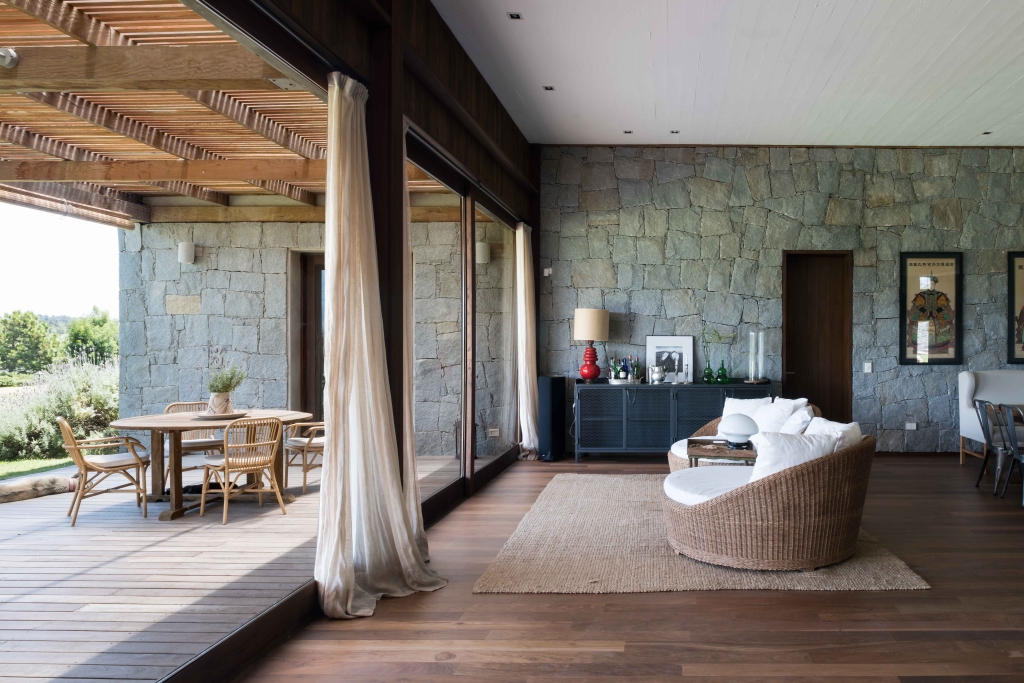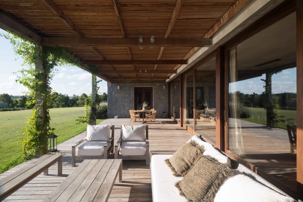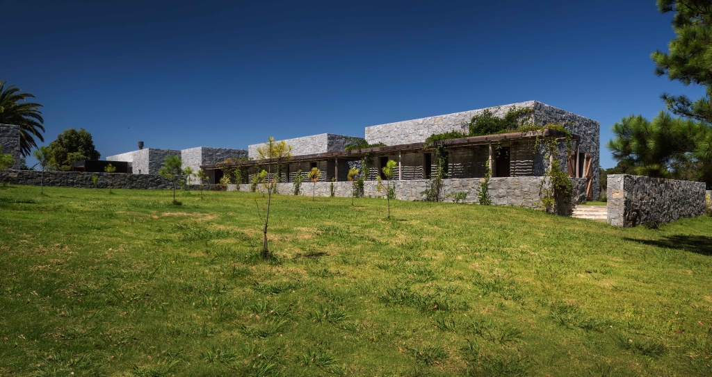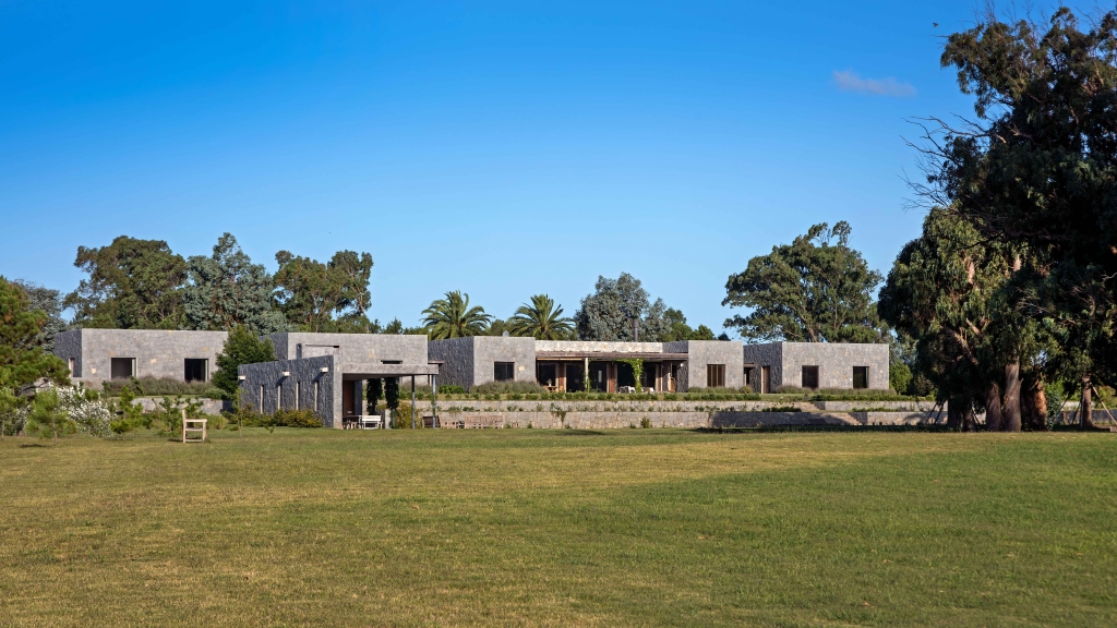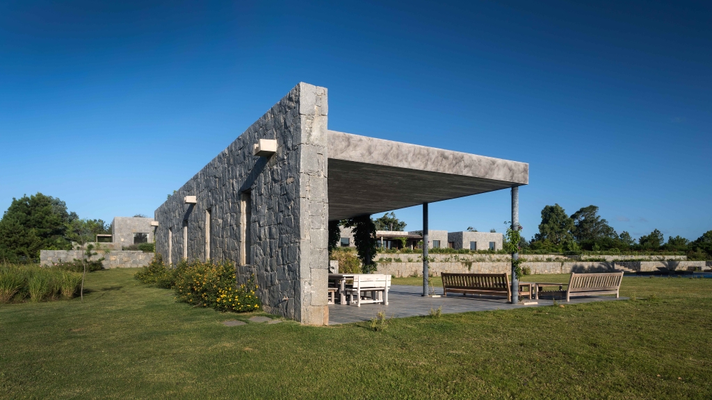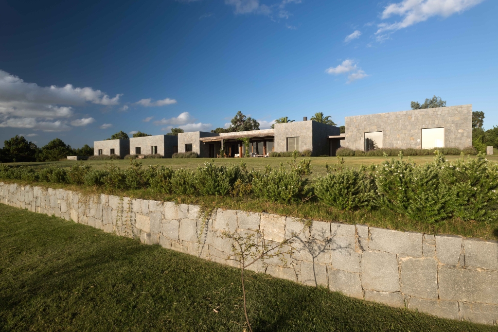 This small country ranch is set in the photogenic Uruguayan countryside. The idea was to start from a block of rustic granite stone and generate a system of volumes that, in addition to admiring the countryside, would form a series of courtyards and spaces typical of a country home, but not often found in a modern composition.