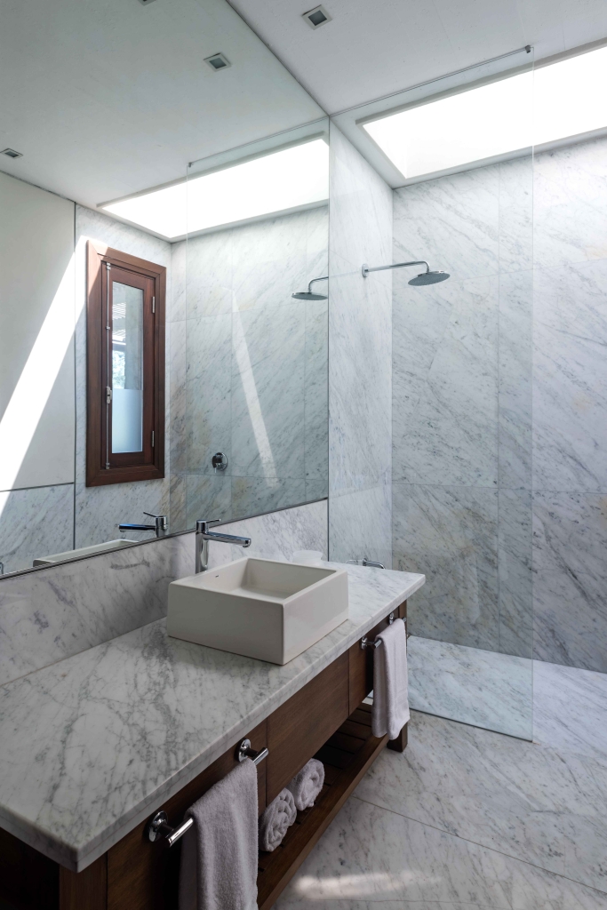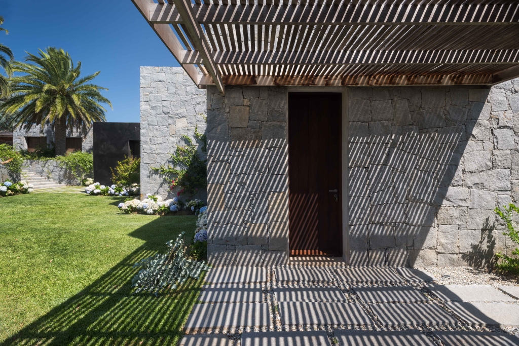 The house is accessed through a generous courtyard which contains parking space for cars, similar to those typically used on the farmsteads for antique carriages. The harmonious play of monolithic granite volumes and large walls of this same material gives structure to these courtyards.