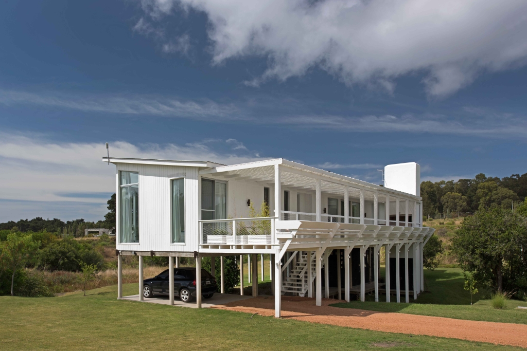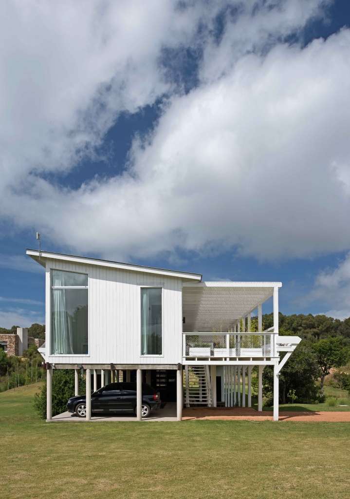 On a chained underground concrete, the piles emerge and are chained again to support the slats where the house built in wood and a metal roof rests. The hot water provided by a solar system located at the roof takes advantage of the east-west orientation.