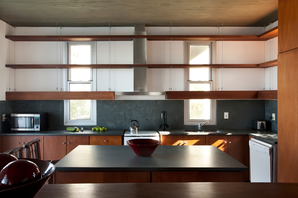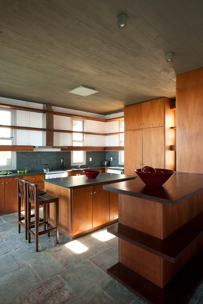 The materials used are typical of the work of Martin Gomez: stone, wood, concrete and glass.