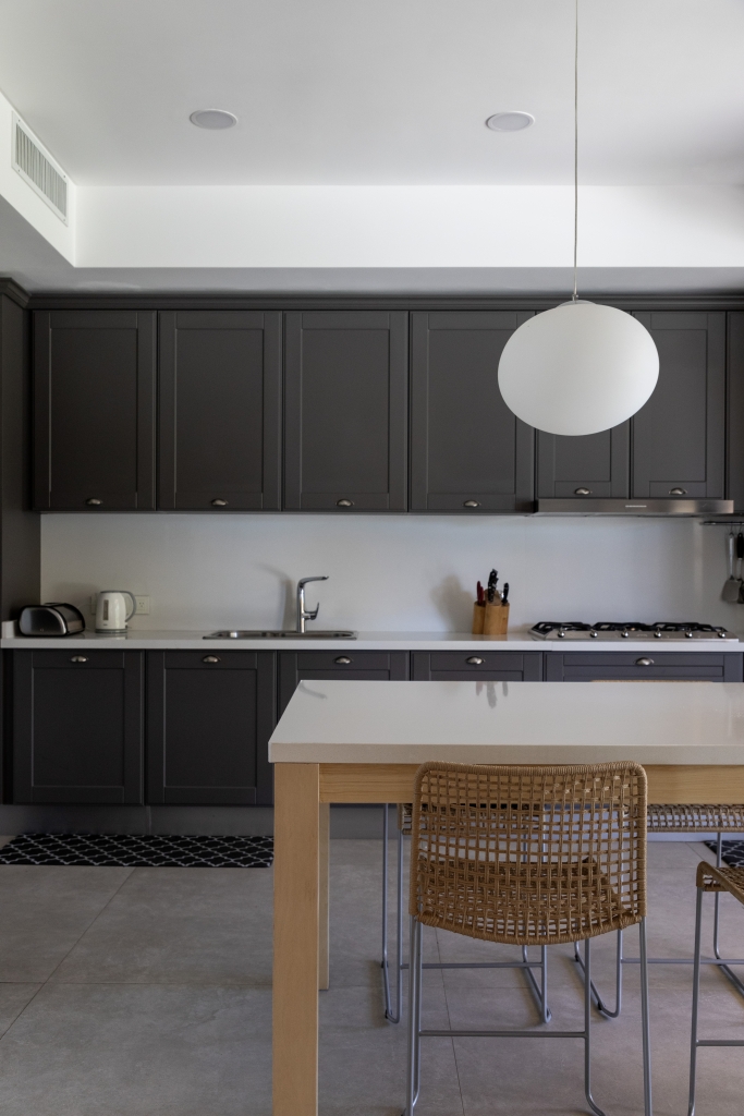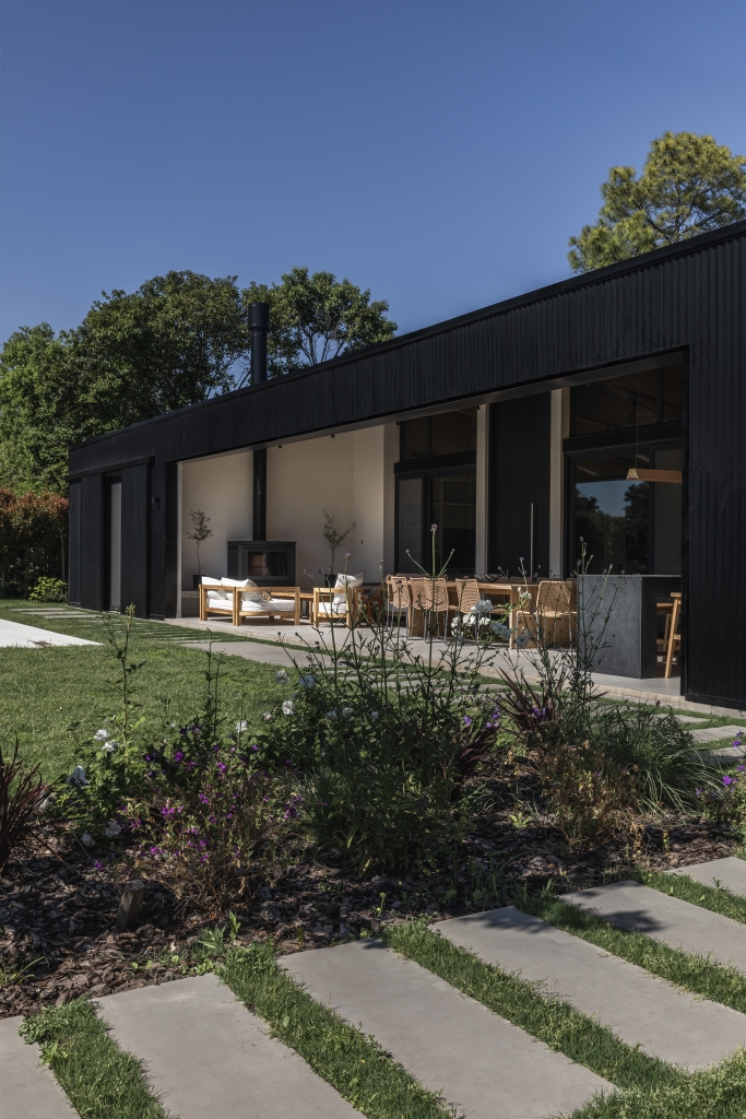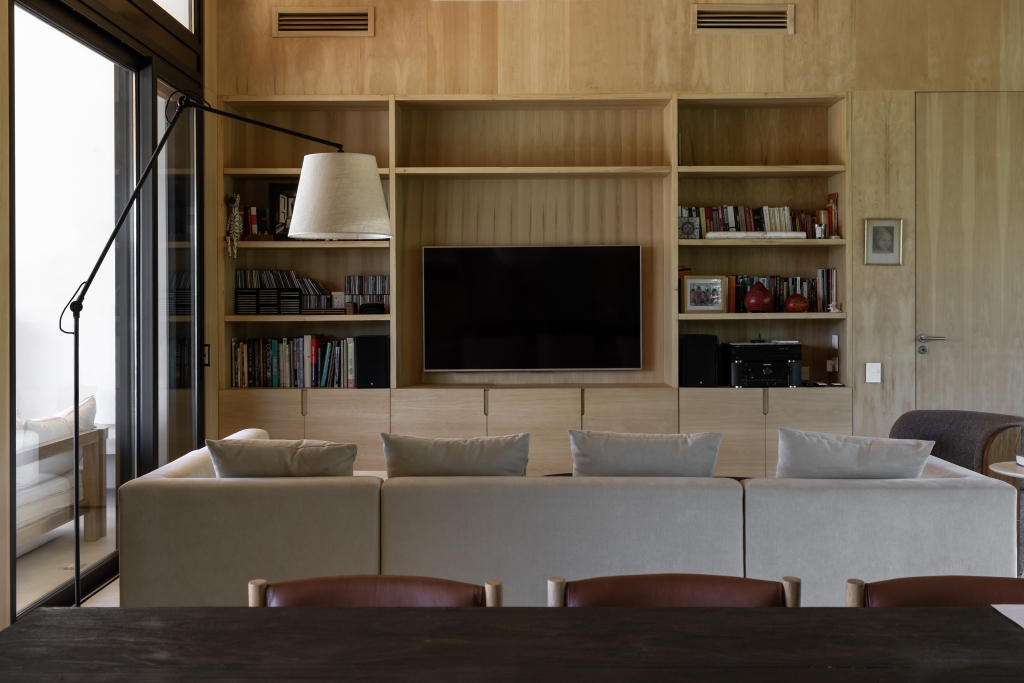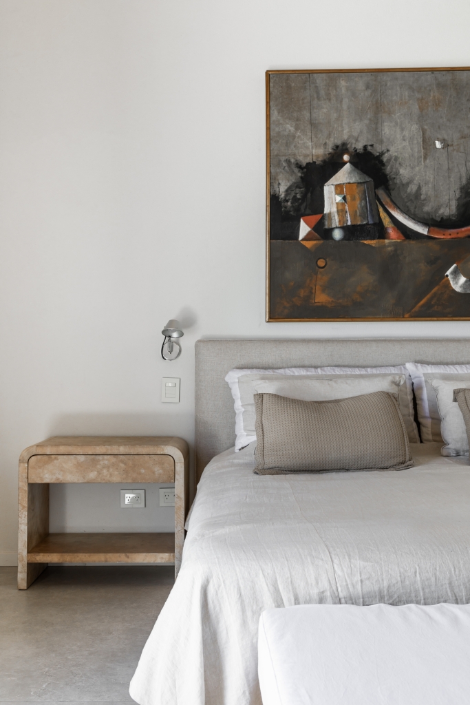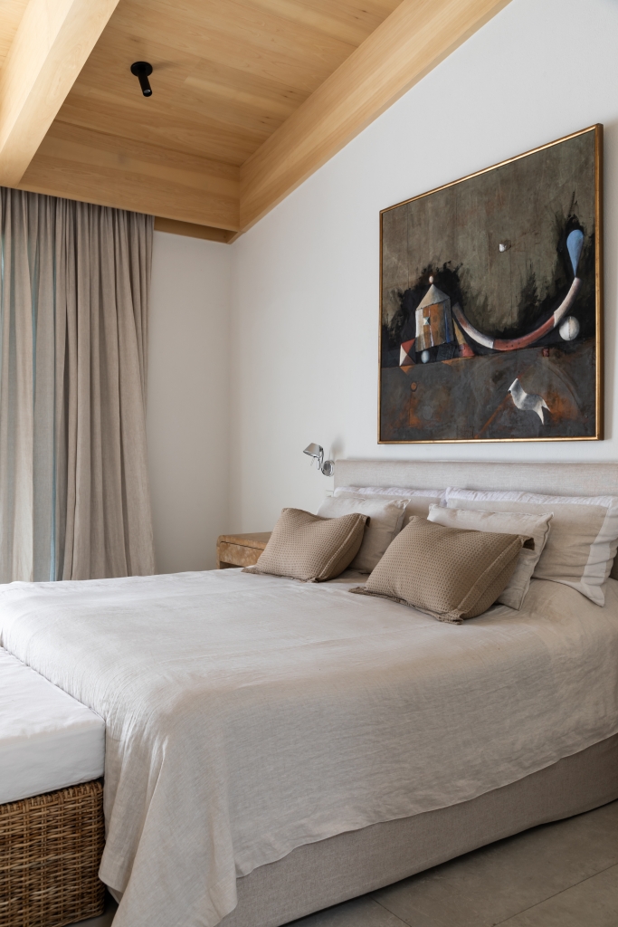 The project is organized around a clear scheme: a large central living-dining area, open to a gallery that directly connects with the pool and garden, functions as the core of daily life and a family gathering place. On one side of the volume is the master bedroom, conceived as a spacious and comfortable suite, with two full bathrooms and two separate walk-in closets, allowing simultaneous and private use by the couple. On the other side of the volume are two additional bedrooms, designed to accommodate the grandchildren during their visits.