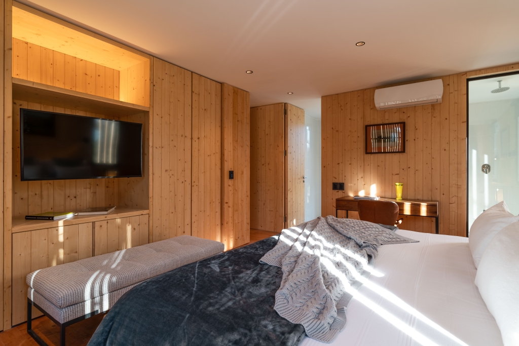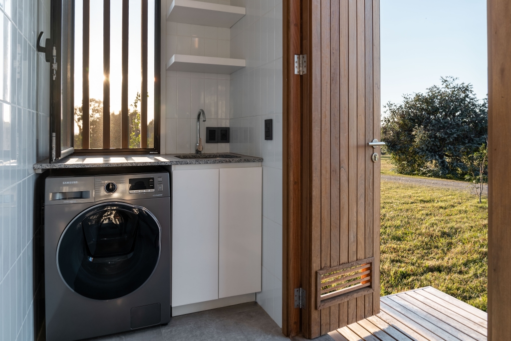 The second volume is made up of a bedroom with an en-suite bathroom and a space for the laundry room. Both volumes are separated by the semi-covered gallery, which is open to clear views of the countryside, a space designed for both leisure and contemplation.