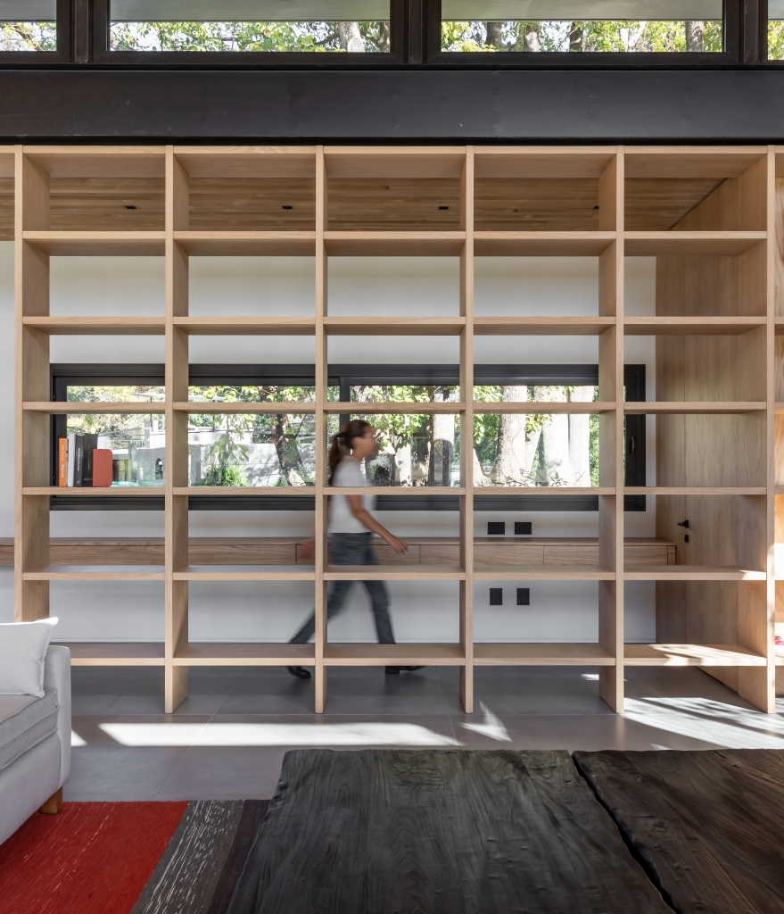 With an approximate covered area of 280 m² and 120 m² of semi-covered, permeable galleries, the residence unfolds on a single L-shaped floor plan. This layout not only defines the garden area but also organizes the interior spaces, generating cross views between the various rooms.