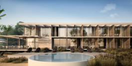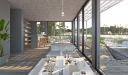 Located on the exclusive La Barra coast in Uruguay, the two-story building is located perpendicular to the Maldonado creek. Its main facade establishes an inseparable bond between the building and the exterior by opening up to the surrounding natural environment. Equipped with a perimetral deck, a pool and a solarium, the space offers the perfect setting to relax and enjoy the sun.