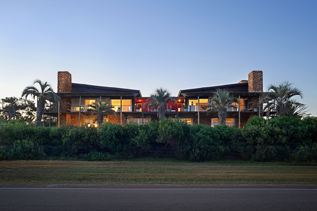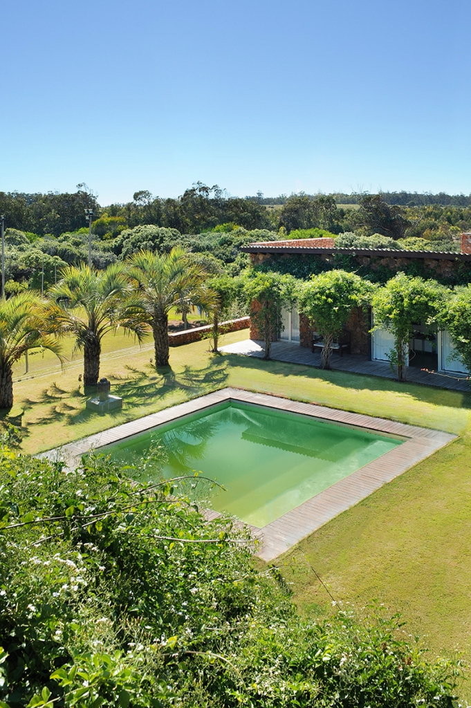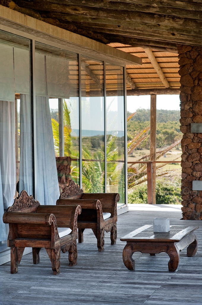 A covered gallery runs around the entire perimeter of the U-shaped home, thus offering a spacious outdoor living area connected to the communal areas.