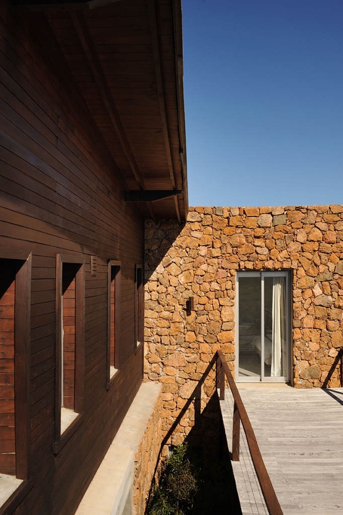 Pura Vida embraces the landscape in two ways: its composition and its materials. The ground floor is U-shaped and faces the main entrance, while the upper level extends towards the sides. The main materials are stone and carved local wood.
