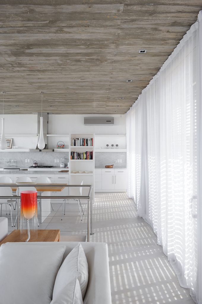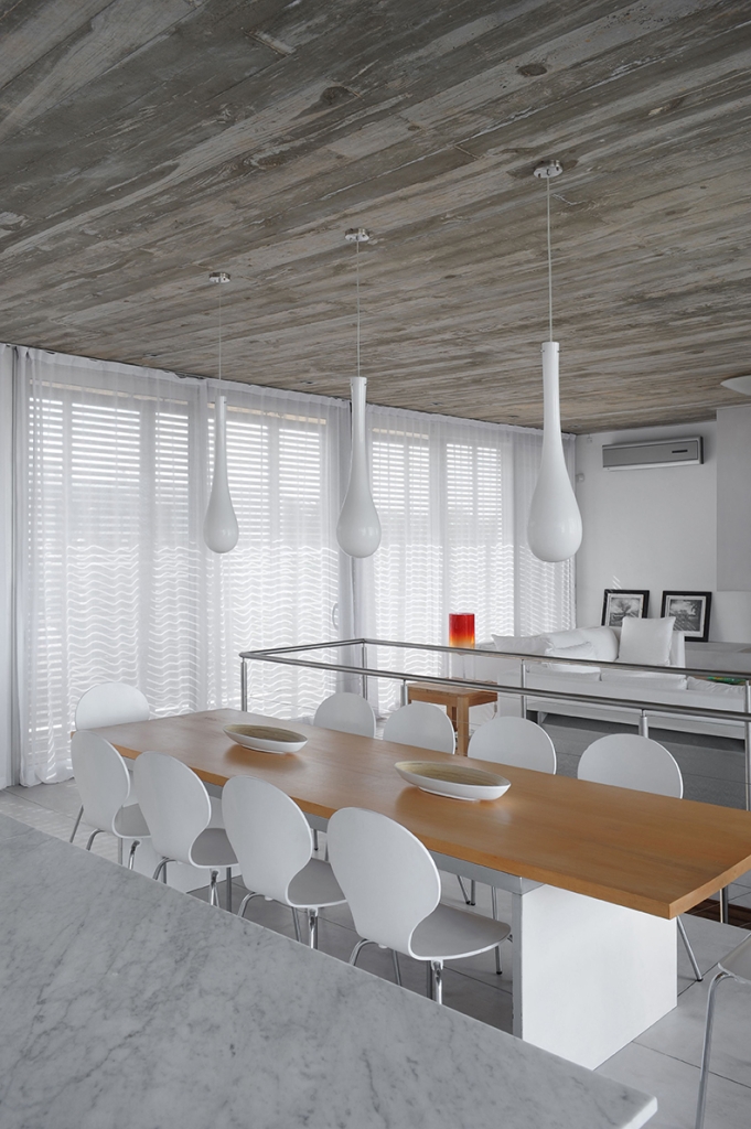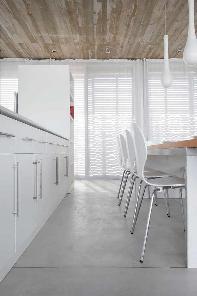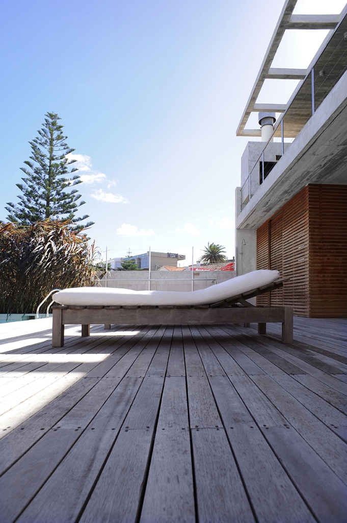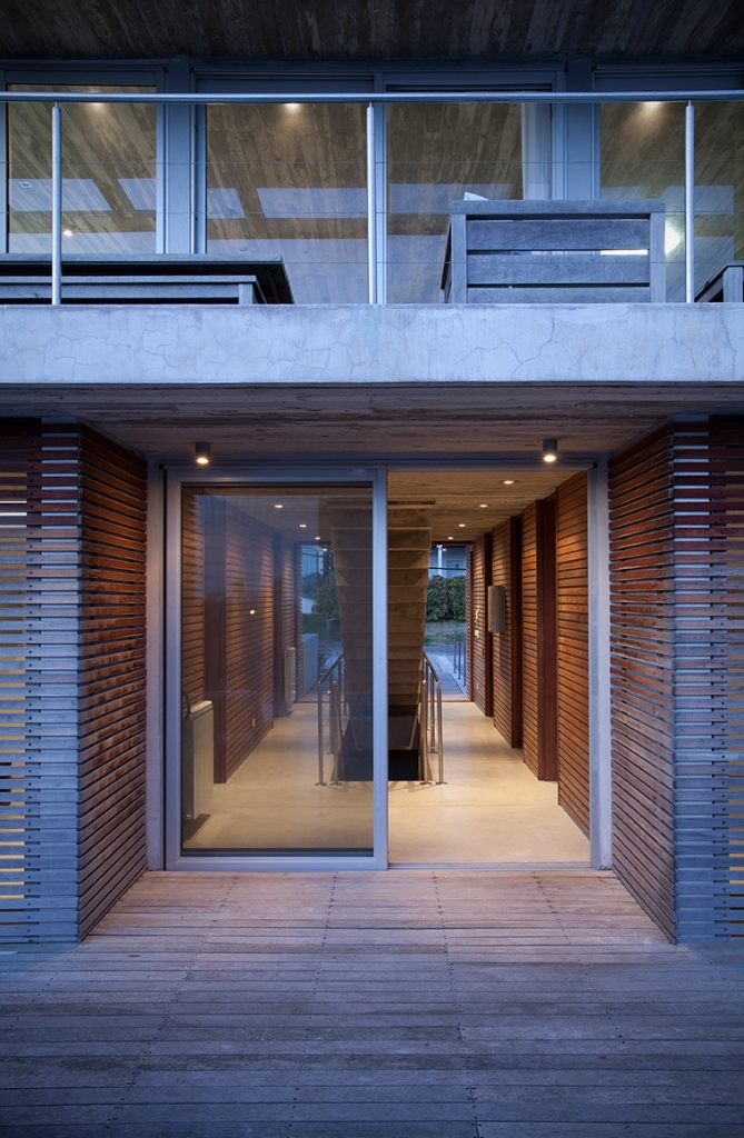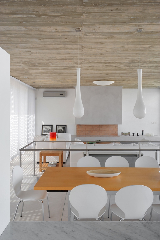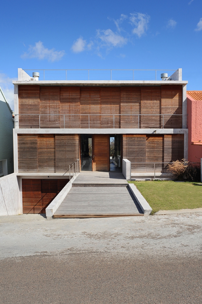 The attic was designed as yet another wood-clad room with steel banisters where the residents can enjoy the outdoors and especially watch the incredible sun setting behind the skyline of Punta del Este.