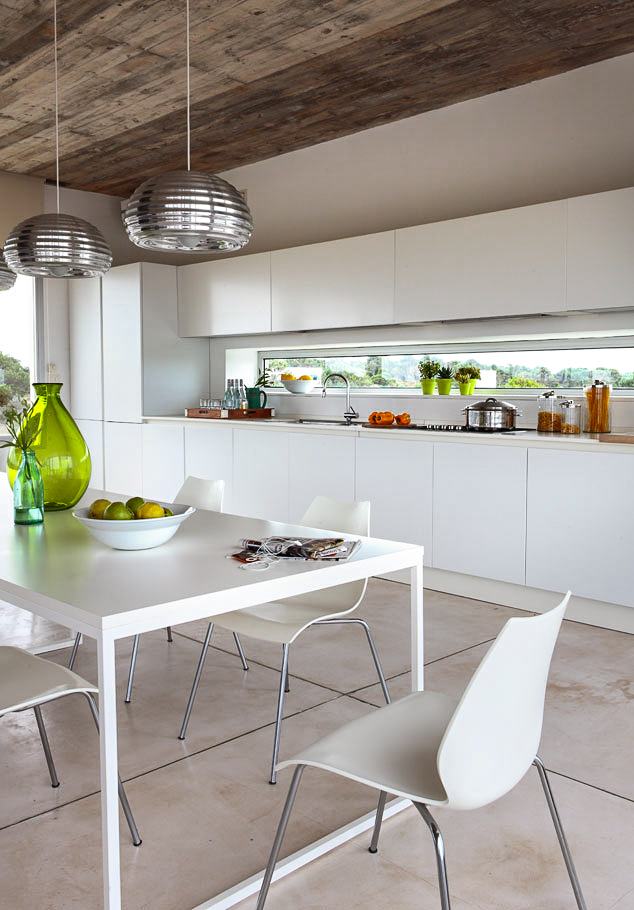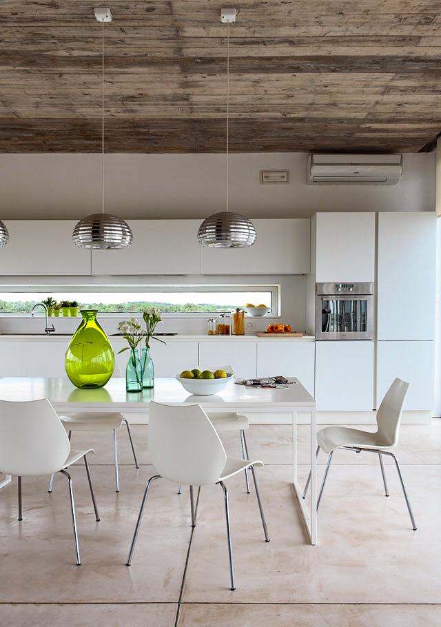 The L-shaped module, which measures 700 square metres,houses the communal areas on the upper floor and the private quarters on the ground floor, with the exception of the main suite, which enjoys scenic views.