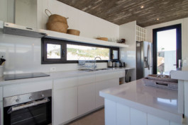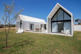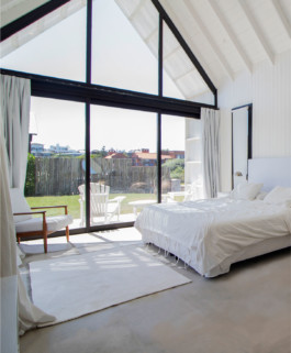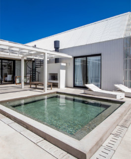 En el patio ubicamos un piletón cuadrado, una galería con pérgola y un fogón, que son el corazón de esta casa. A esto se le suma una gran terraza sobre el volumen con techo plano, con una increíble vista al mar.