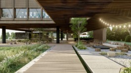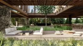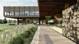 El proyecto se encuentra emplazado en la extensa ochava del terreno, donde un amplio techo de madera con cielorraso de cañizo busca contener los diversos componentes del programa, adaptándose a la vegetación existente y cociendo los programas deportivos y de relajación ubicados a lo largo del recorrido. De esta forma la arquitectura busca preservar la naturaleza dialogando con la misma, generando corredores abiertos de biodiversidad.