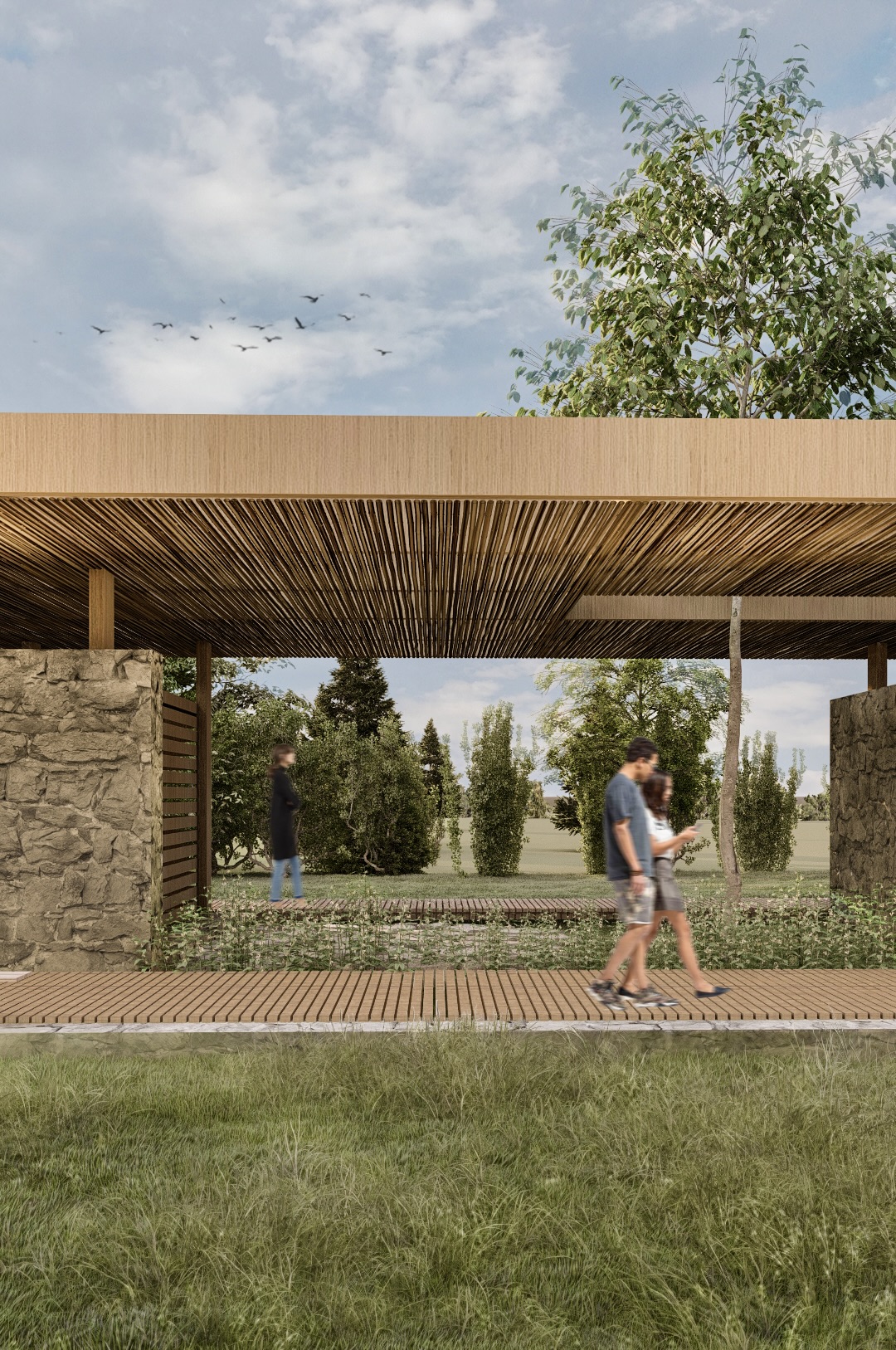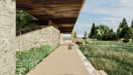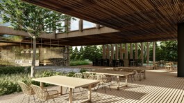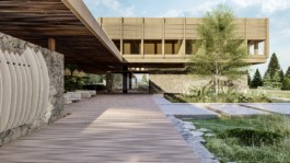 El edificio propone una experiencia donde los usuarios se encuentren en permanente contacto con la naturaleza de forma grupal o individual, disfrutando de una arquitectura despojada pero cálida donde no solo son importantes los espacios interiores sino también como se llegan a estos espacios. Apelando a una mirada vernácula en el empleo de los materiales como la piedra y la madera, respetando la naturaleza existente, para generar sentido de identidad proponiendo una comunidad más conectada con su entorno natural.