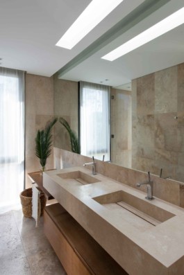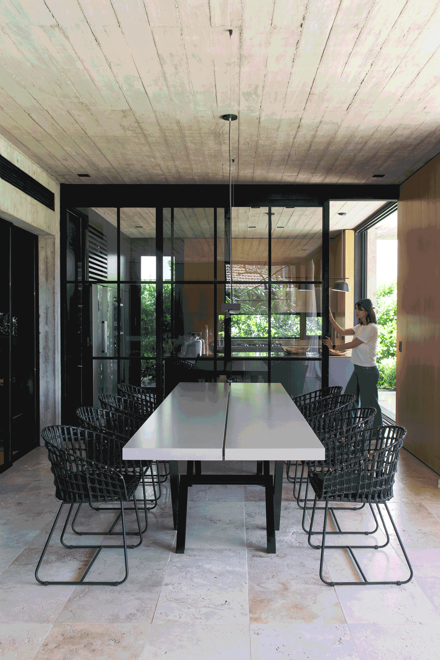El uso del hormigón y pisos de travertino tanto para interior como exterior hacen que el mantenimiento sea nulo, generando así solo el disfrute de la sensación in/out en todos los ambientes.