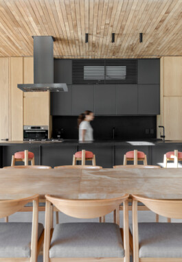 La casa se funde con el paisaje, creando un espacio que no solo expresa una identidad arquitectónica precisa, sino que también respeta y realza la belleza del entorno. Su disposición, los materiales seleccionados y el diseño detallado promueven una experiencia de vida integral, en la que cada ambiente se conecta con el exterior, ofreciendo un refugio en armonía con la naturaleza.