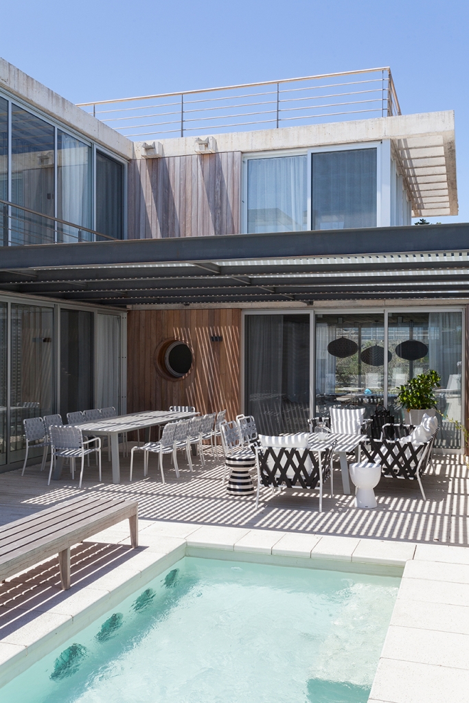 El gran patio central con piscina y parrillero es el área social por excelencia, y puede verse desde toda la casa. Otros dos patios menores abren la casa al ingreso de luz en todas las habitaciones. Nautilus consta de una sala de cine, una cava, gimnasio propio, y amplias bibliotecas en la sala de juegos. Era necesario un amplio espacio de recreación para esta casa de verano de una familia numerosa, que combina la comodidad interior con su incorporación en el paisaje edilicio de la costa de Manantiales.