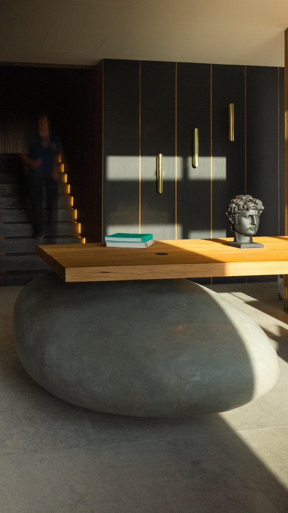 Uno de los aspectos más distintivos de esta reforma es la elaboración con un herrero para crear piezas únicas. Estos elementos artesanales incluyen revestimientos personalizados para paredes, columnas y muebles, que proporcionan un carácter exclusivo y refinado al interior. La combinación de estas piezas únicas con la arquitectura moderna y las vistas impresionantes resulta en un departamento que se destaca por su diseño exclusivo y acabados de alta gama.