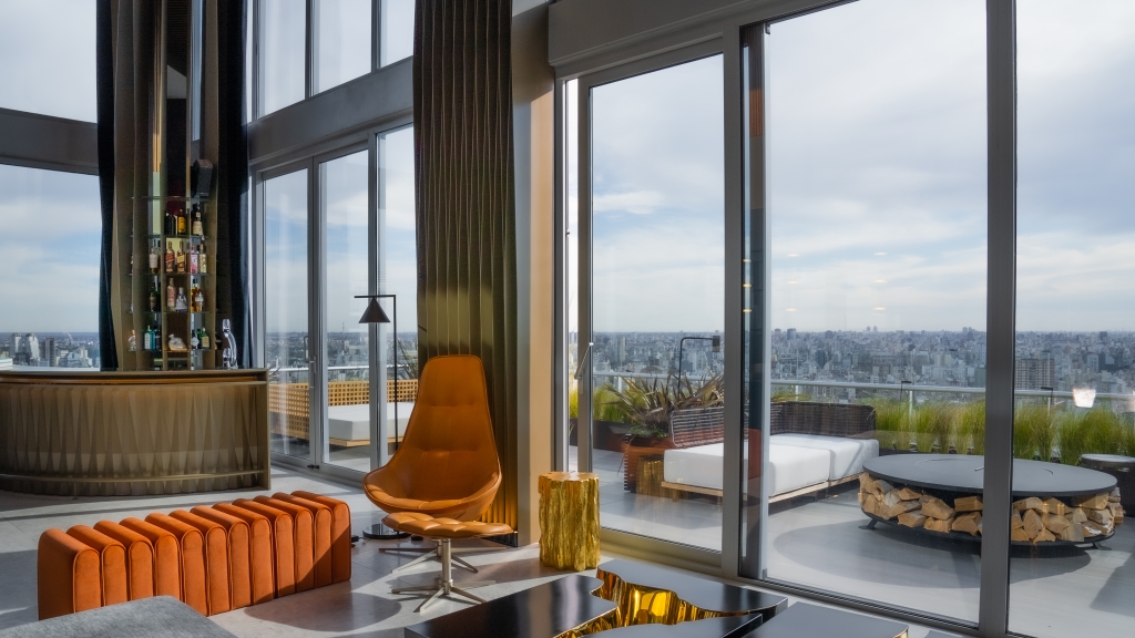 El último piso se trabajó como si fuese el rooftop de un bar, ofreciendo una experiencia excepcional con una terraza equipada con piscina y parrilla, perfecta para el ocio al aire libre mientras se disfrutan las espectaculares vistas panorámicas de la ciudad. Este nivel también dispone de un espacio interior complementario que extiende la funcionalidad de la terraza.
