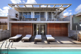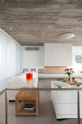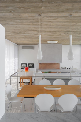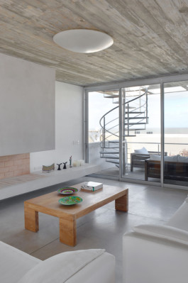 El programa interior se invierte, situando la zona privada alrededor del hall de entrada y las áreas comunes en el espacio diáfano de la planta superior, con el fin de obtener las mejores vistas del mar.
