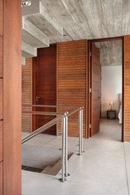 El ático se diseñó como una habitación más de madera con barandillas de acero, para disfrutar del aire libre y, especialmente, para contemplar el increíble poniente detrás de la silueta edilicia de Punta del Este.