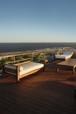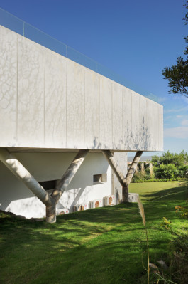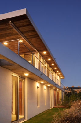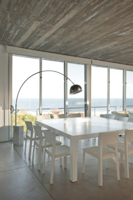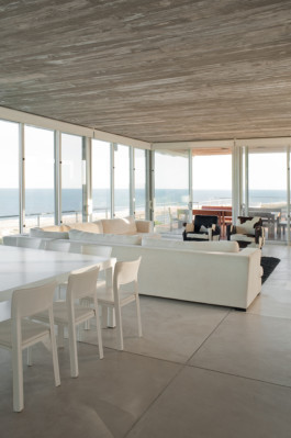 Las áreas comunes están invertidas, dejando la zona privada en la planta baja. Sin embargo, la originalidad viene dada por la planta ático, en donde se sitúan la piscina y el espacio al aire libre. Gracias a esta inversión del programa, se construyeron unas aberturas circulares en los muros de la piscina que dejan ver el mundo subacuático desde la circulación interior de la vivienda, lo que produce un verdadero espectáculo.